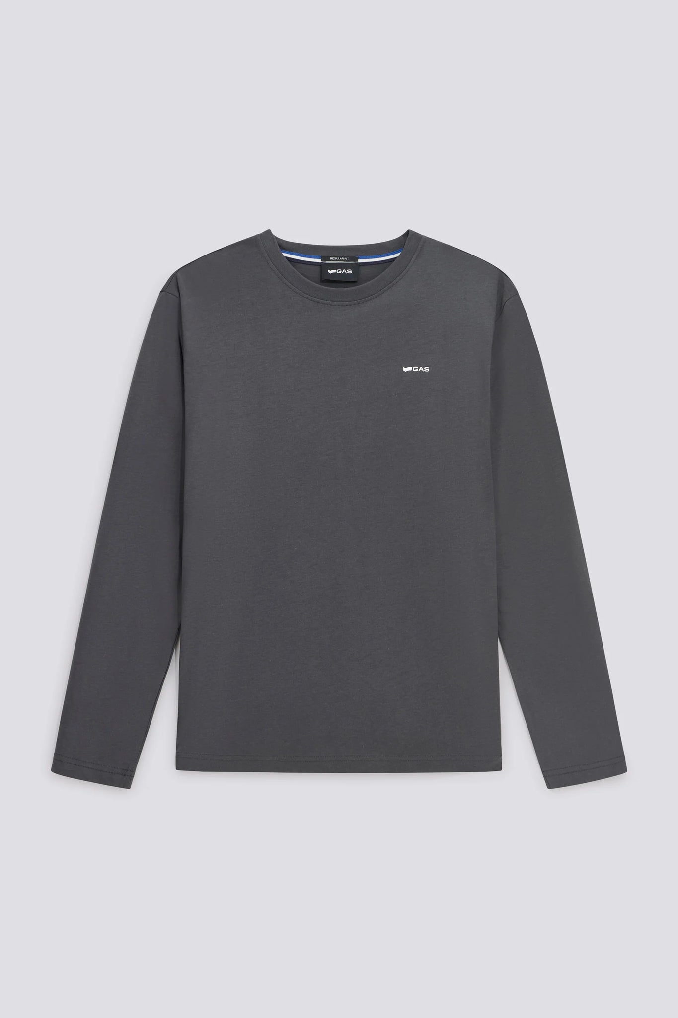 Camiseta de manga larga regular fit en jersey de algodón, personalizada con el logotipo estampado en el pecho y el sudor interno, para un toque distintivo y contemporáneo. Características principales: