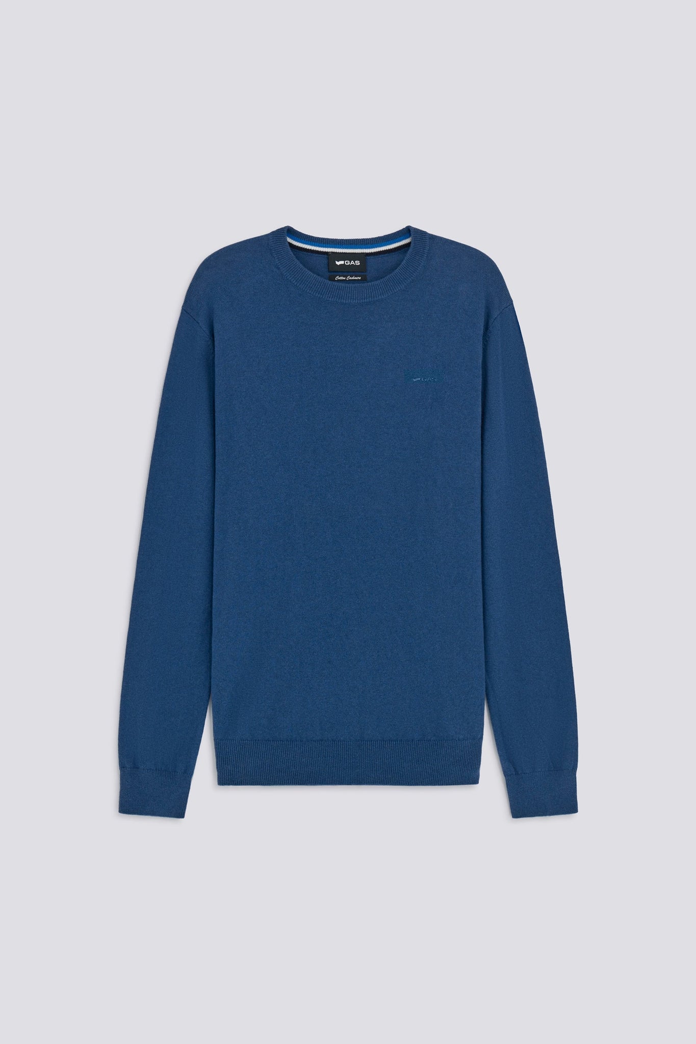 Cuello redondo hombre slim fit en suave algodón mezclado con cachemira, enriquecido con el bordado GAS en el lado del corazón. Un esencial invernal refinado, perfecto solo o bajo una chaqueta. Características Principales: