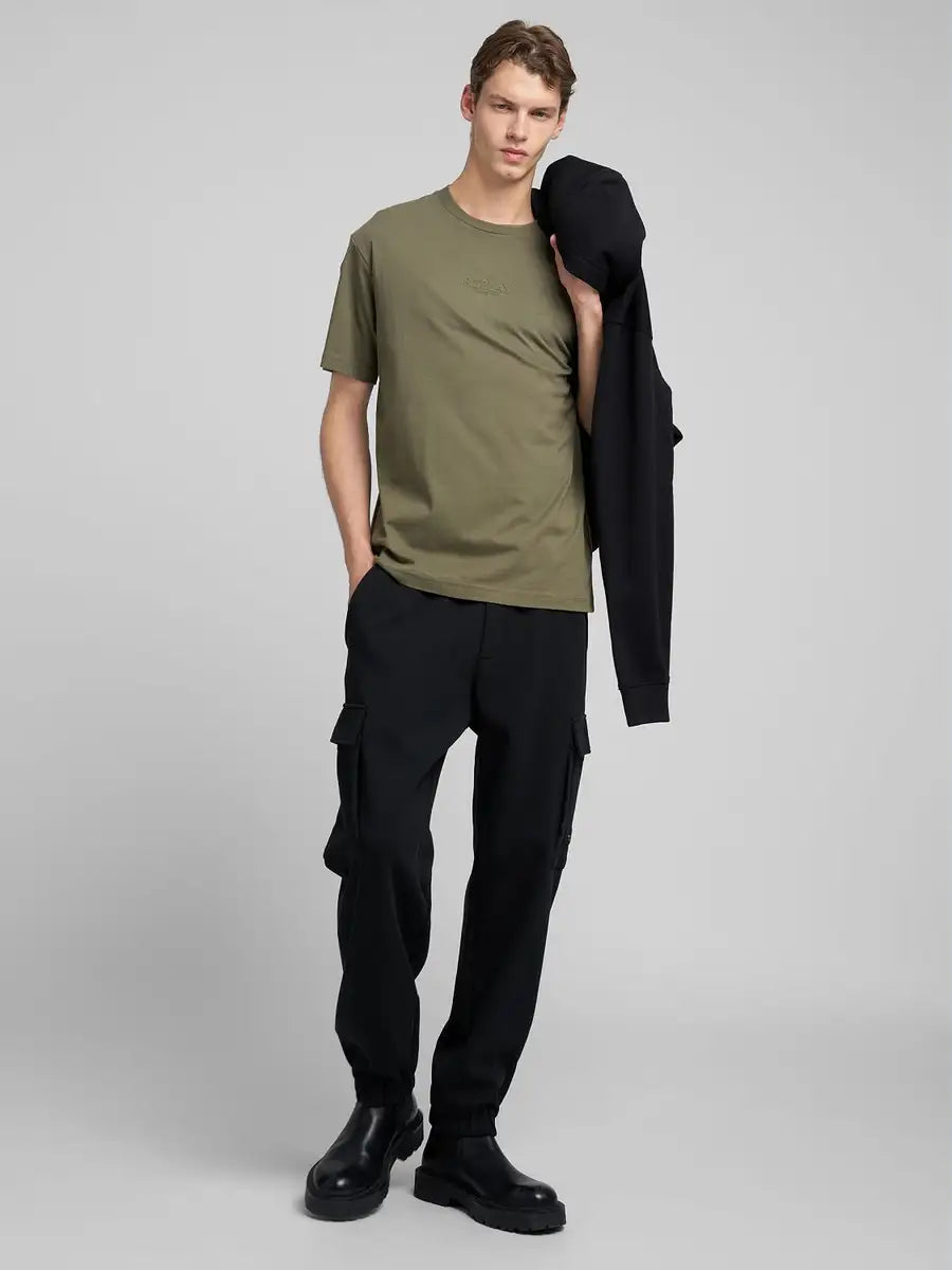 Camiseta de cuello redondo confeccionada en punto de puro algodón, garantía de suavidad y resistencia. El modelo de corte regular se caracteriza por la inscripción en relieve a tono en la parte delantera. Completa el diseño la etiqueta con el logotipo de archivo aplicada en la manga.