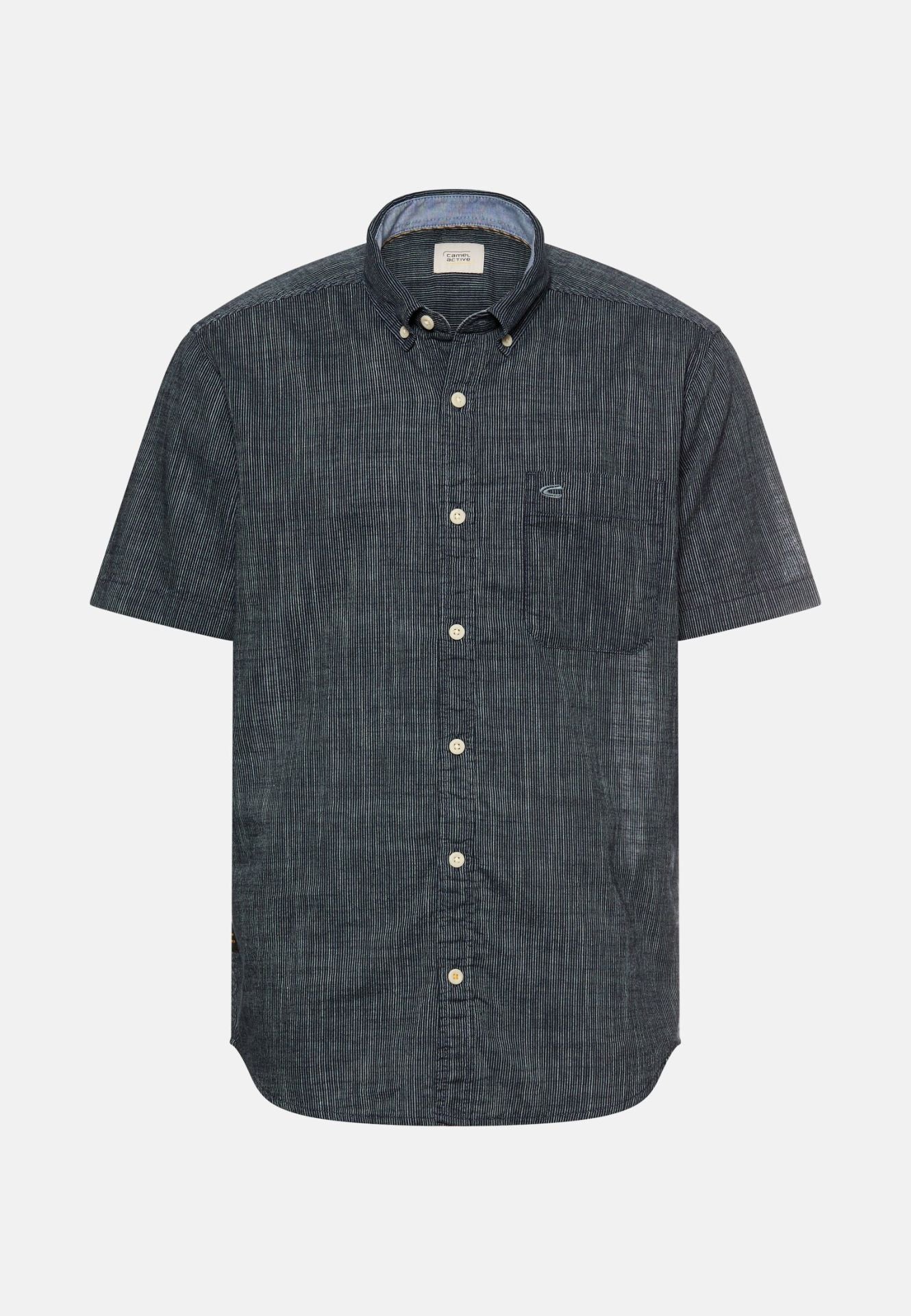 manga corta con cuello abotonado tiene un corte regular y un bolsillo en el